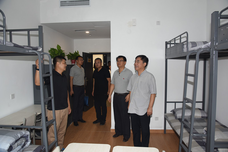 8月15日,党委书记、校长马连湘,校党委副书记李庆领到中德校区走访调研,深入了解校区建设总体情况,并向酷暑中坚守工作岗位的各方面工作人员表示慰问。