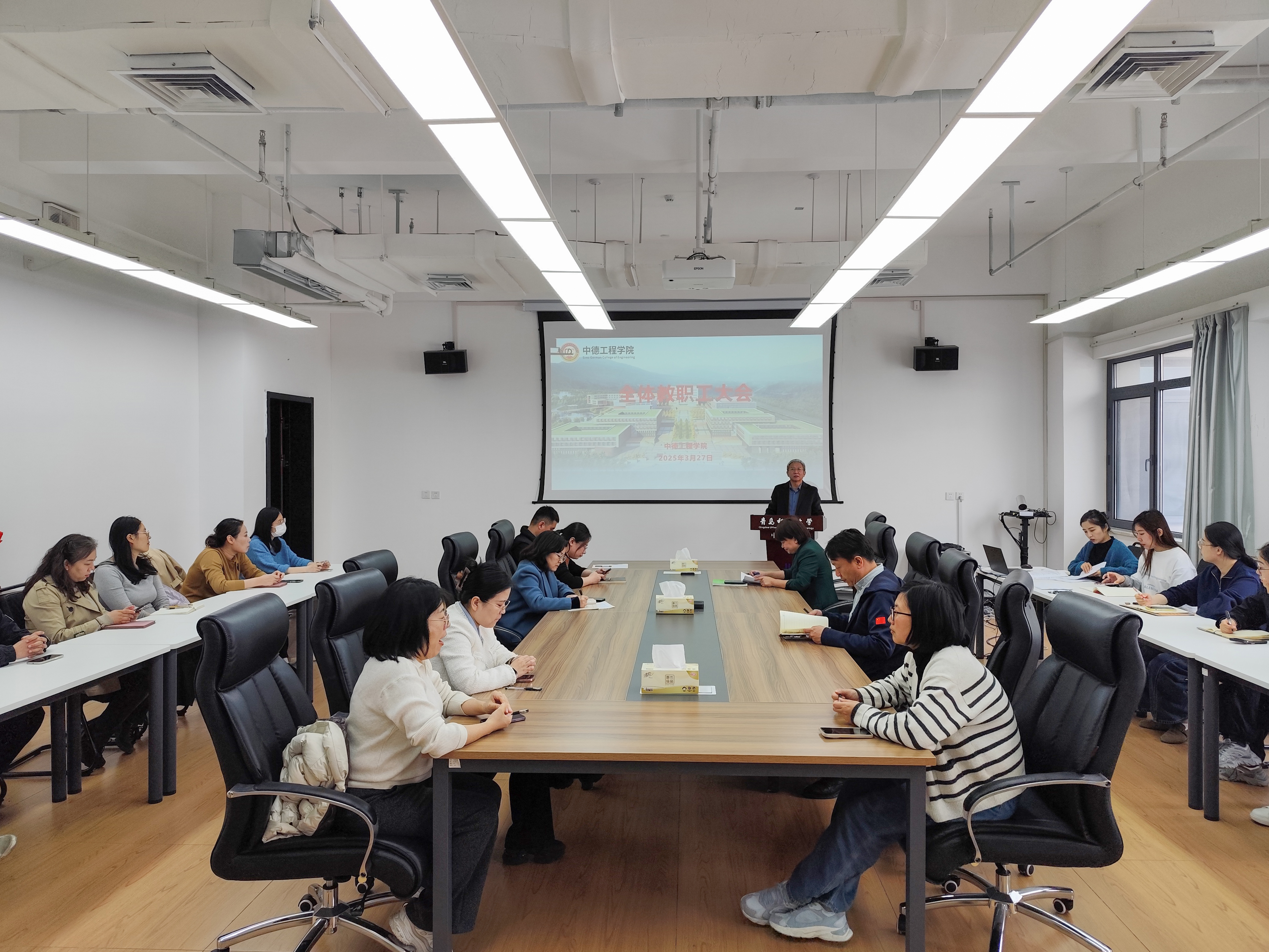 首先,岳学海代表学院对深化校院两级管理体制改革的总体要求、推进情况等进行了全面的解读,3个方案和6个办法充分体现了全院教师对于逐步建立责权清晰、分级负责、目标管理、考核激励、制度保障的校院两级管理体制的理解。其次,针对深化校院两级管理体制改革的学院特点的具体举措,岳学海剖析了目前合作办学高质量发展面临前所未有的挑战和机遇,明确指出发展关键在于是能否持续特色发展、高质量发展。最后,对学院持续完善相关配套方案提出了切实可行的意见,并希望全院教师为推动学院对德合作、教学科研以及人才培养的深刻变革,为学院中德合作办学高质量发展建言献策。