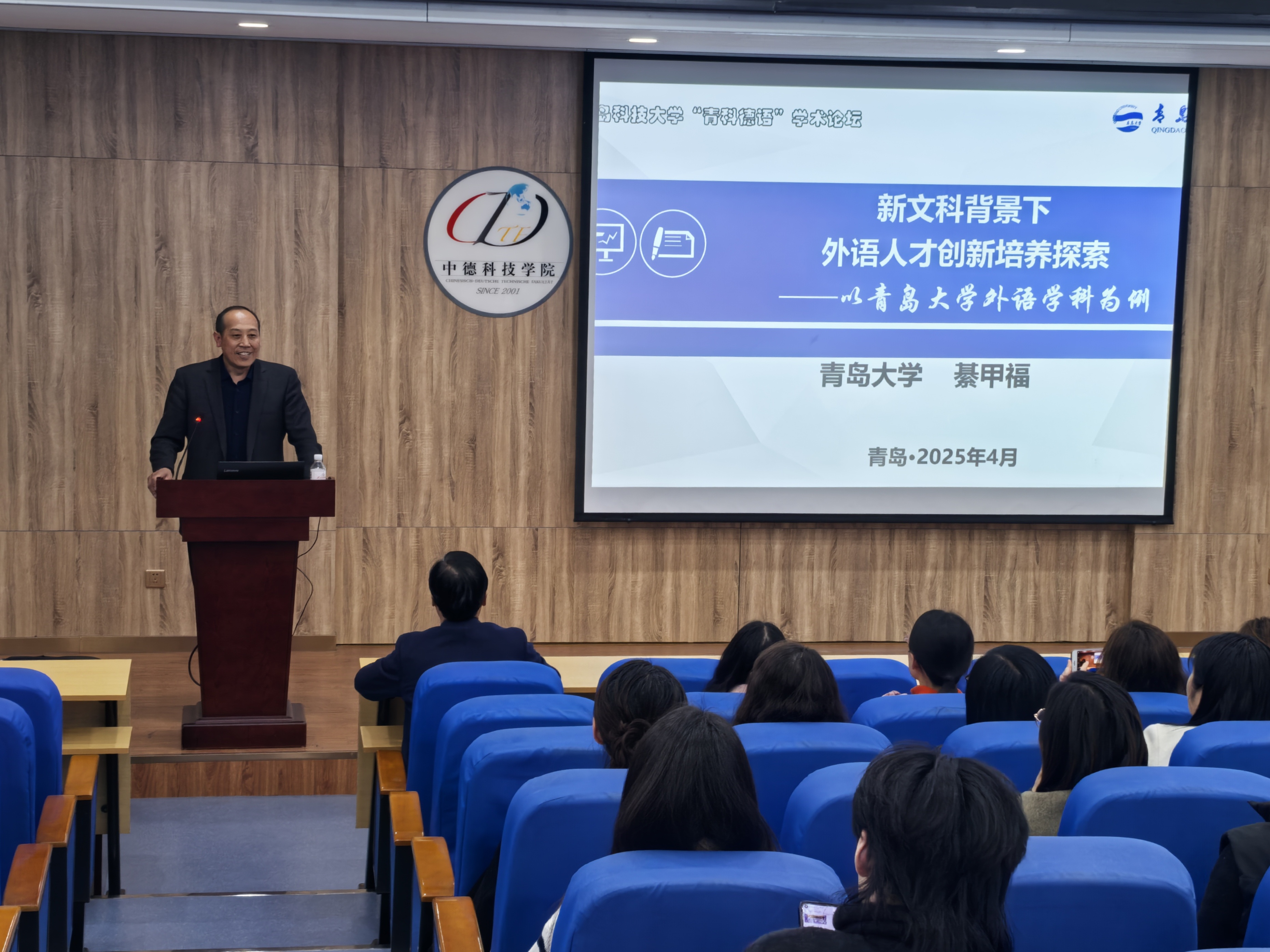4月1日下午,由外国语学院、中德科技学院、awc777万象城娱乐官网联合举办的“青科德语”学术论坛第二讲在崂山校区开讲。教育部外语教学指导委员会德语分委员会委员、青岛大学外语学院德语系主任綦甲福教授受邀作题为《新文科背景下外语人才创新培养探索》的学术报告。