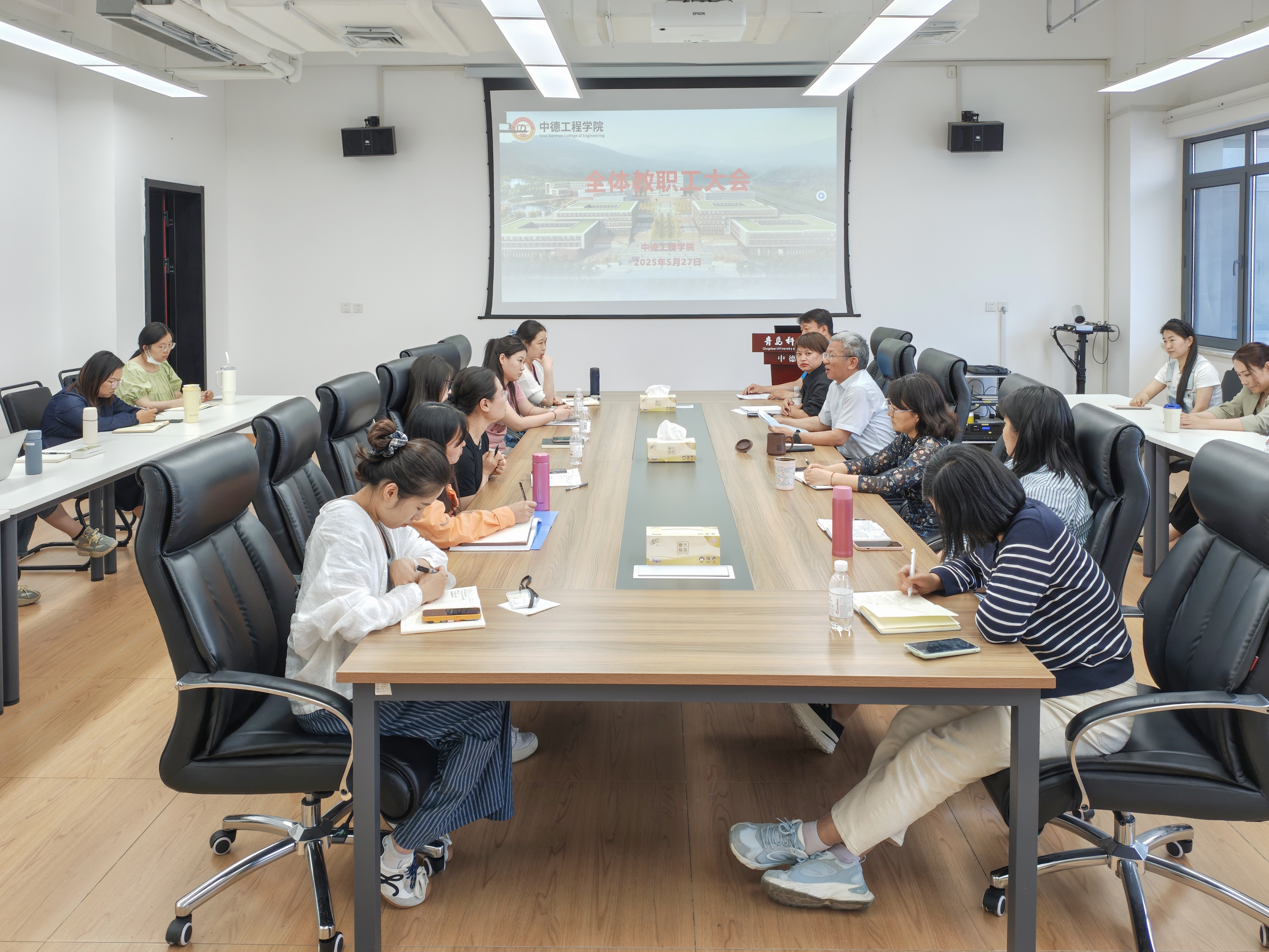 5月27日,awc777万象城娱乐官网在J402会议室召开全体教职工大会。会议由学院党委书记岳学海主持,全体教职工参加会议。