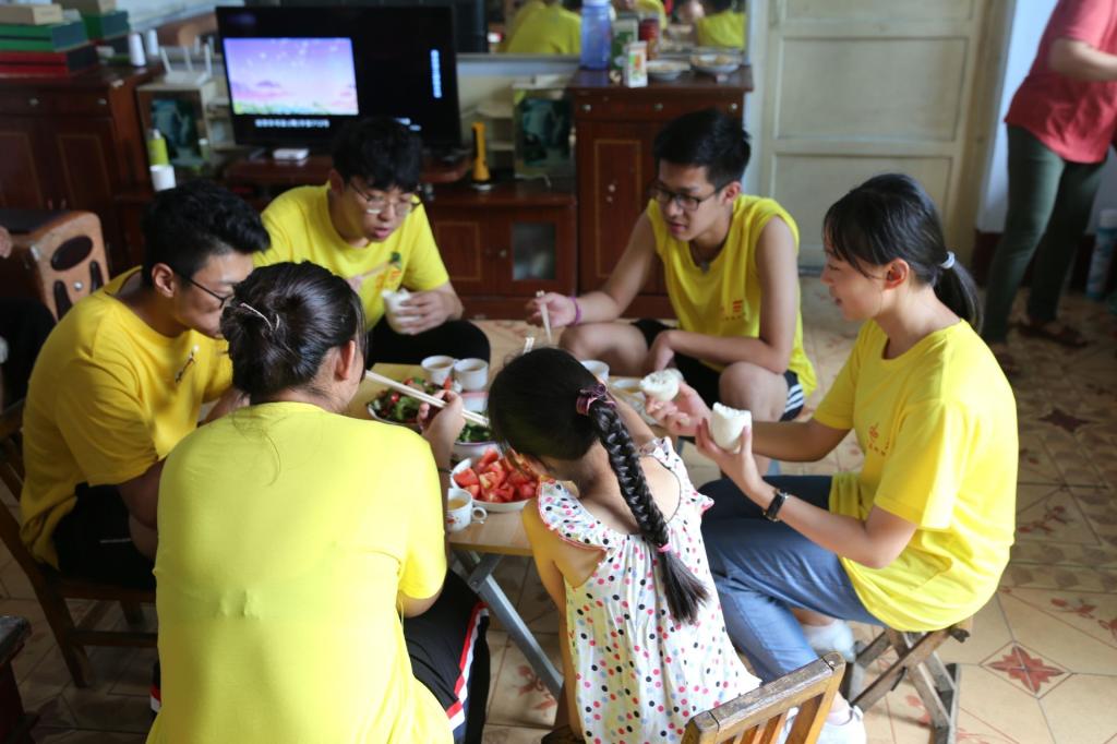 中午,成员们集中到了一个家庭。这个家庭的孩子一直跟爷爷奶奶生活在一起,爷爷奶奶年龄越来越大,做饭干活都有些力不从心。团队成员准备了新鲜食材,为孩子和爷爷奶奶做了一顿午餐。吃饭时,成员们与爷爷奶奶聊了聊家庭情况。家里情况比较困难,但为了让孩子好好上学,爷爷奶奶依然需要种地劳作,扛起家庭重担。孩子也非常懂事,不但学习用功,还帮爷爷奶奶做饭干活,一家人生活条件虽然艰苦,但处处充满幸福快乐的味道。